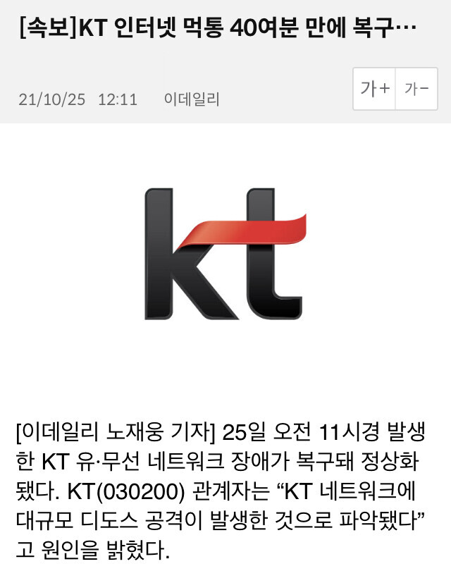 KT 인터넷 먹통되기 매섭게