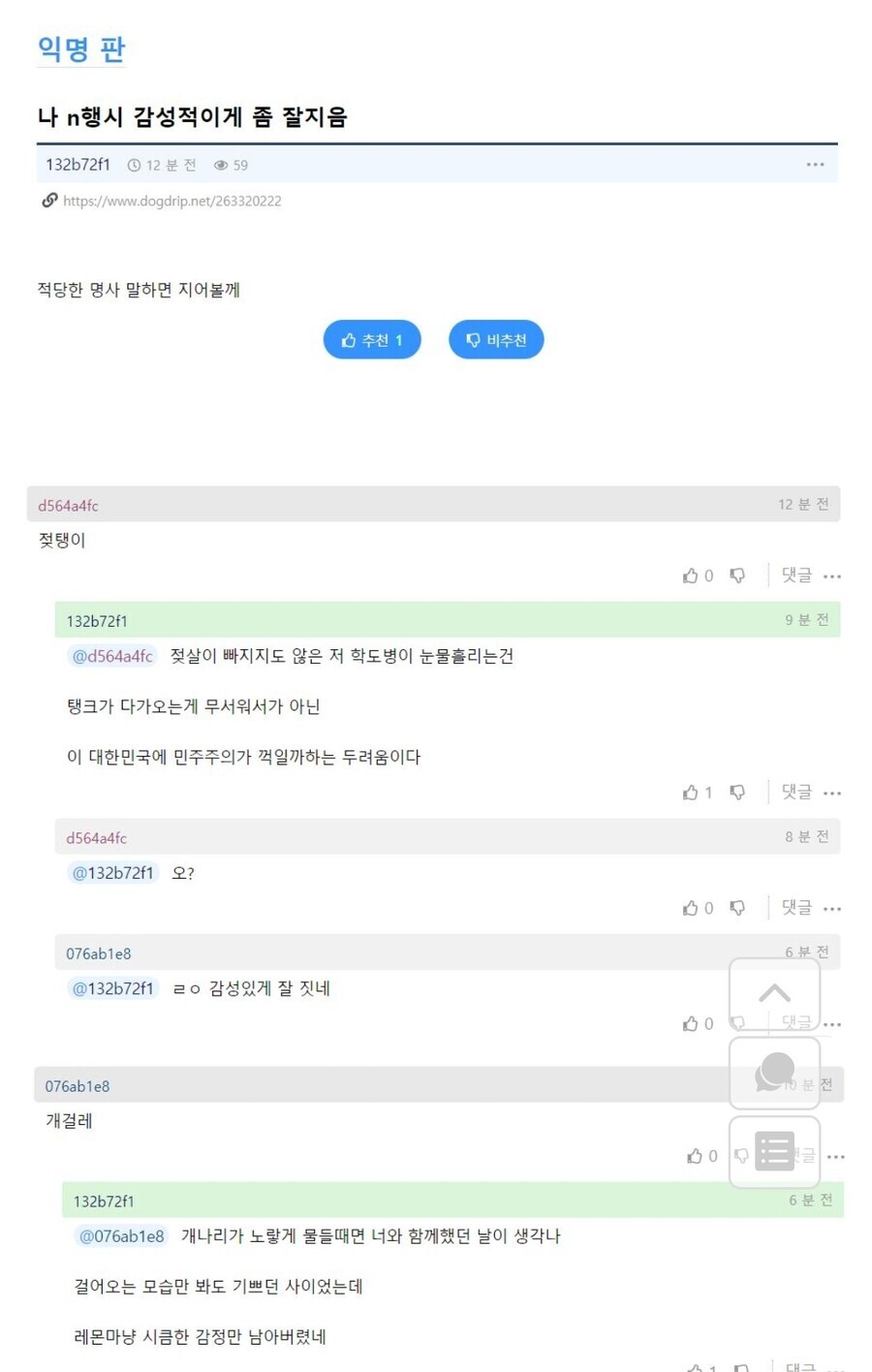 이거 지었던 개드립 n행시빌런 오랫만에 와서 안중근으로 레전드찍고감