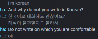 한국어 써주길래 나도 러시아로 답하며 잡담 계속 이어감.