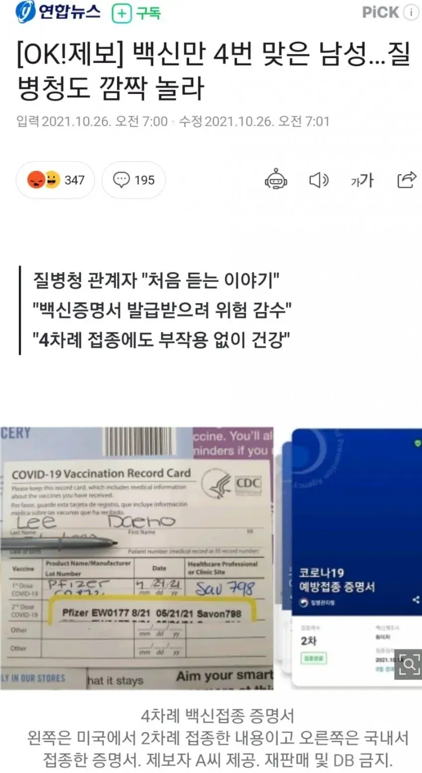 └ 아니 cdc 카드 개븅신같음 무슨 종이 쪼가리에 내 이름 들어가고 맞은 날짜 이거밖에 없어 무슨 바코드라도 있던가 해야지 그래서 백신 안맞은 애들도 다 조작하고 그럼 ㅋㅌㅋㅋ