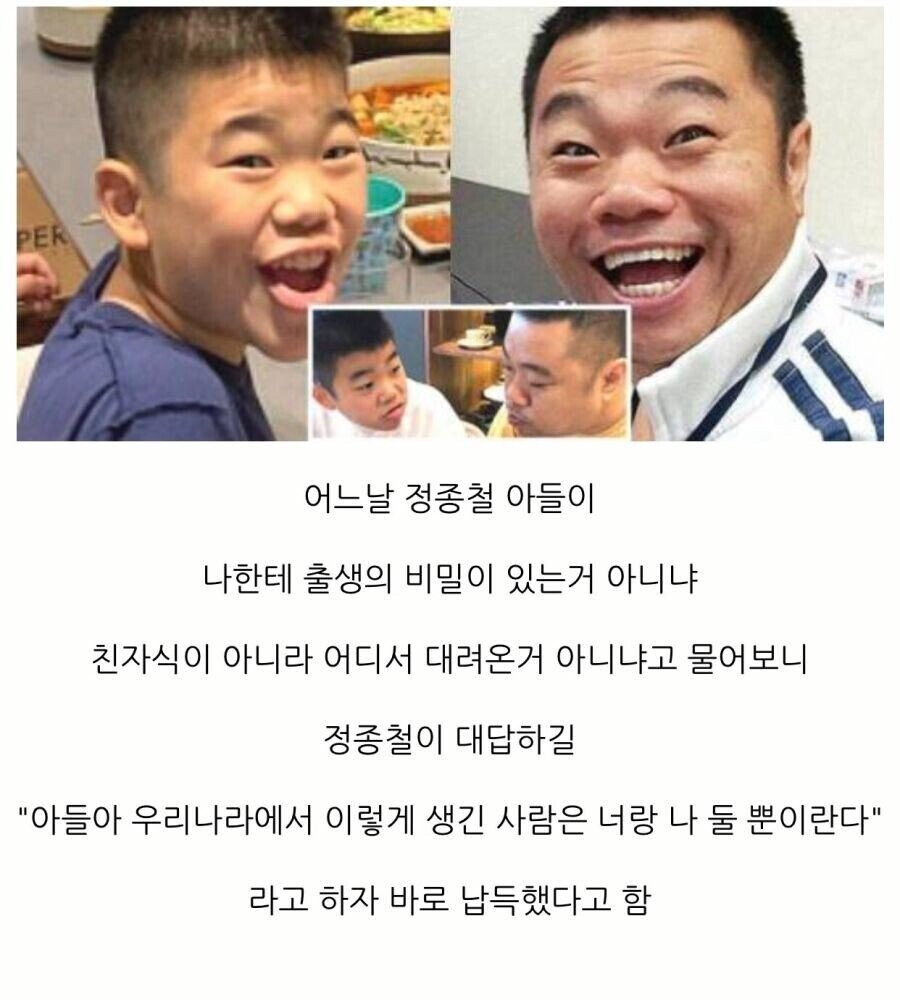 - 정종철이 누군지 모르는 아무 외국인 데려다가 물어봐도 둘이 가족이란걸 알아볼듯 ㅋㅋㅋㅋㅋ