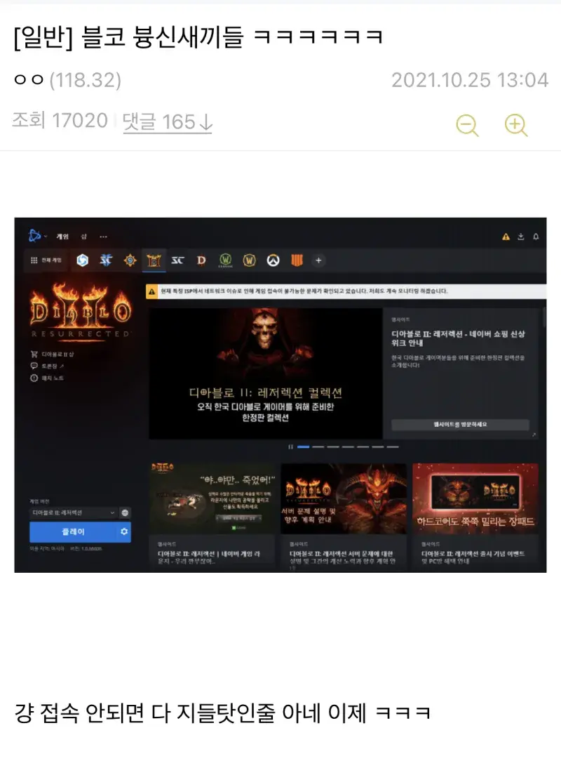 맨날 서버 터트리던 블리자드 근황ㅋㅋㅋㅋㅋㅋ feat.kt