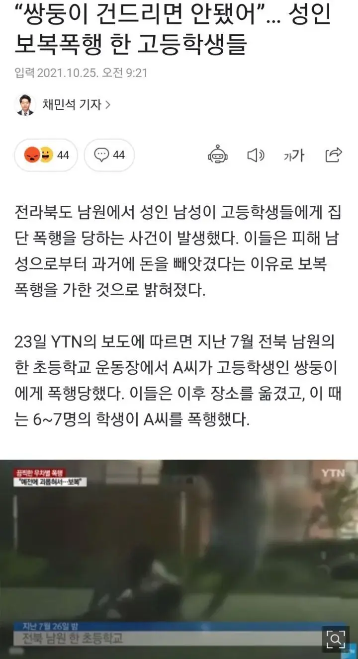 “쌍둥이 건드리면 안됐어”… 성인 보복폭행 한 고등학생들.jpg