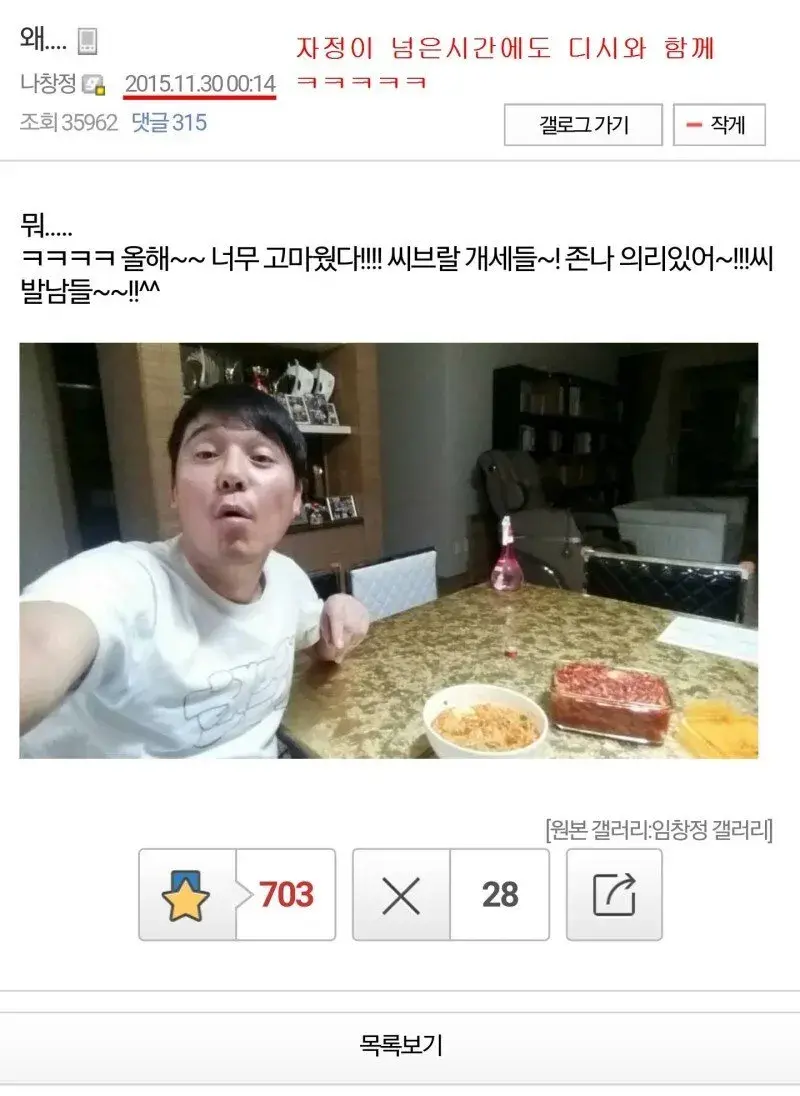 생일날 라면에 소주먹는 디씨인 . JPG
