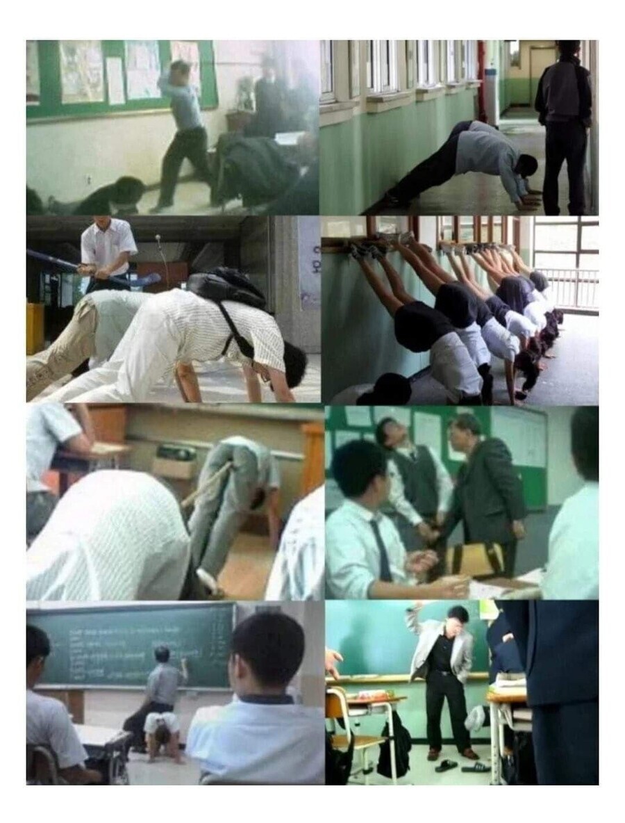 물론 학교에서는 2000년대 중반부터 저런 식의 체벌이 줄어들기 시작했어도 여전히 저런 학생들을 향한 화풀이식 체벌이라던가 이런 악습은 여전히 남아있었고,