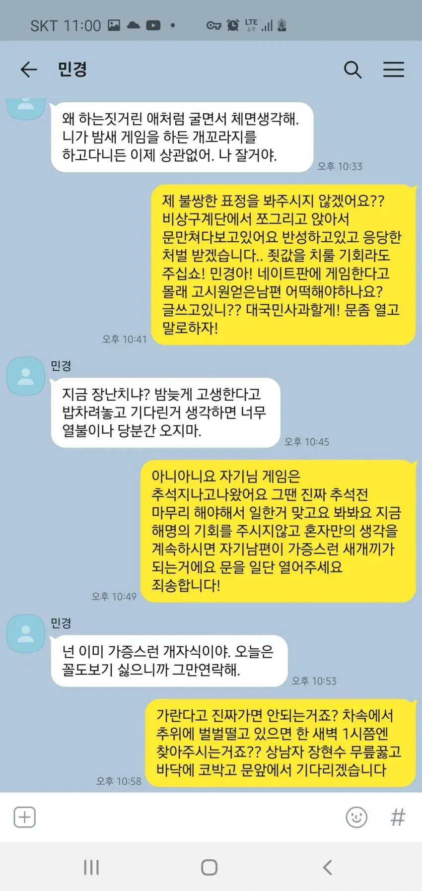 - 처음만보고, 남편이 밤새서 게임한거 가지고 쫓아낸줄 알았는데, 이건 뭐....쉴드칠 거리도 없음. 말그대로 거짓으로 속여가며, 그 시간에 뭘 했을지 어떻게 암. 나라면 절대절대 안풀릴거 같음
