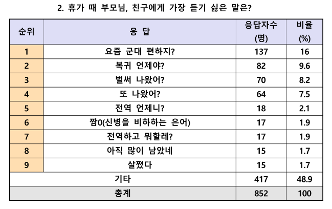 국방일보 오피셜 설문조사 결과 군인들이 가장 듣고 싶은 말