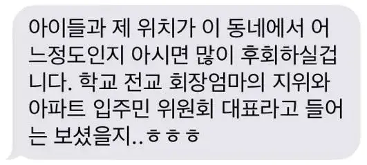 └ 저거 캡쳐해서 웃대나 보배에 아파트 이름이랑 같이 올리면 되지 않을까? 그럼 다음번 입주민 회의 때 갈아치워질 것 같은데...ㅋ 대표 잘못 뽑아서 집값 떨어질거라는 문구 밑에 달구..
