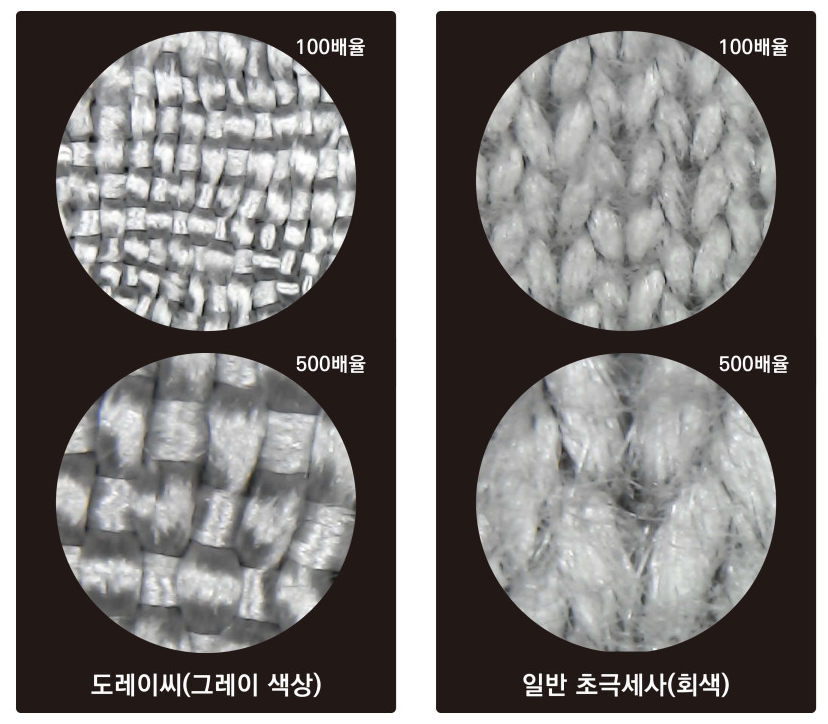 일반 안경닦이 재질인 초극세사를 현미경으로 보면 우측이고