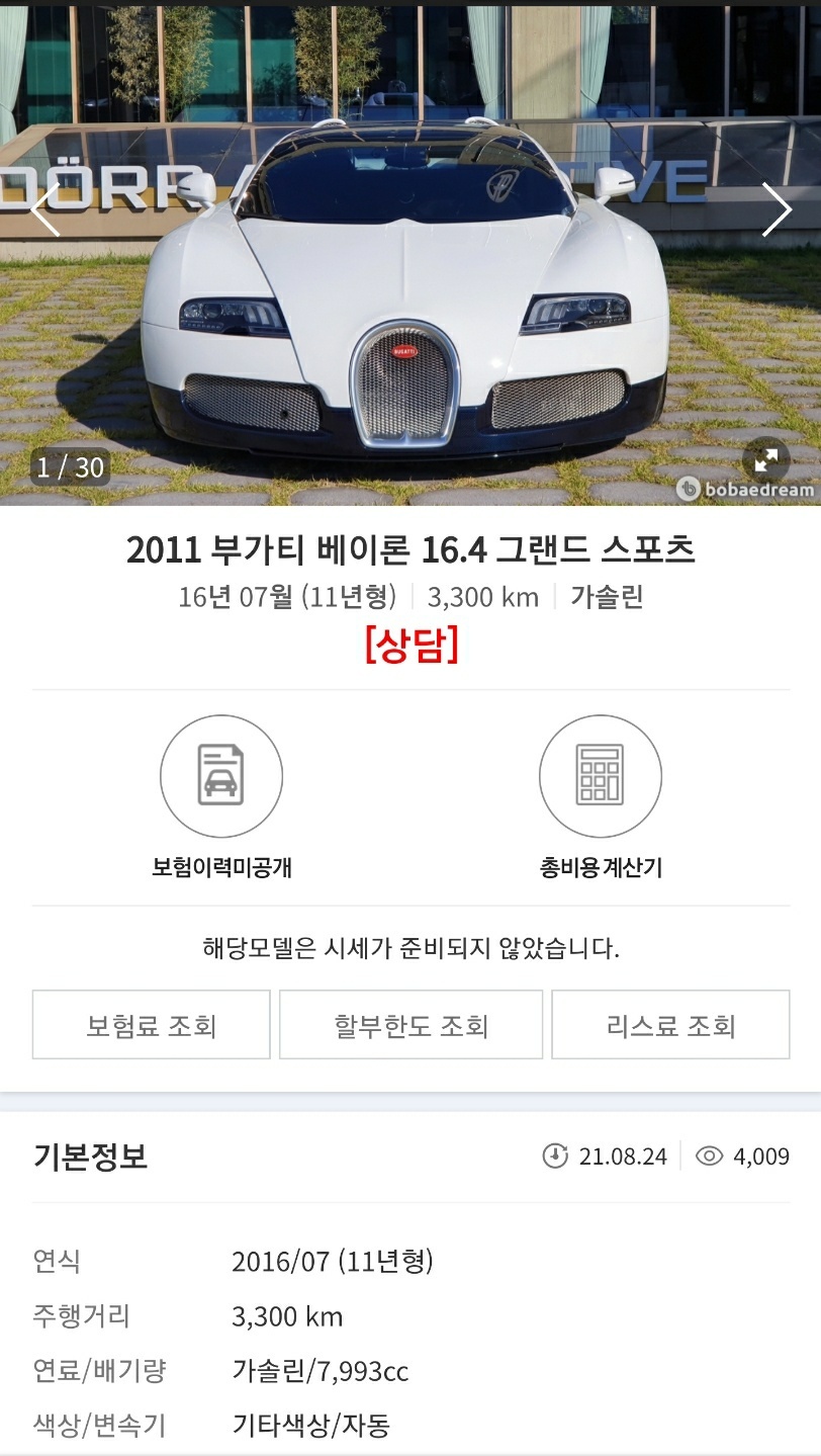 - 부가티 정도면 카푸어보단 자동차 수집가 매물일 것 같음