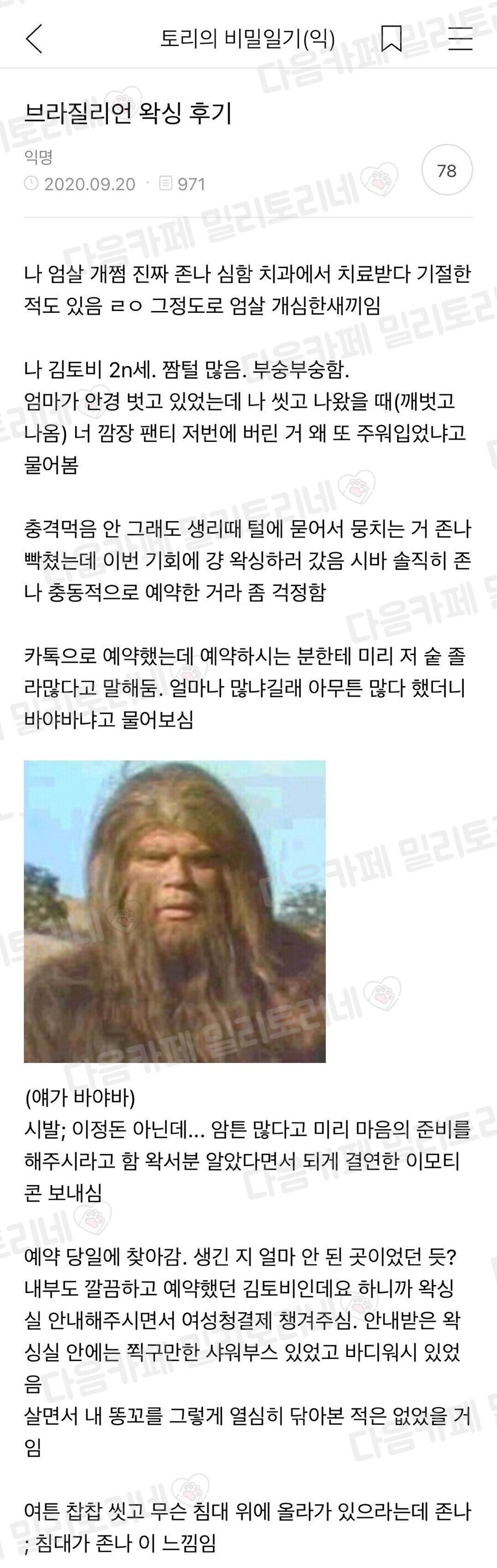 - 왁싱 함 하고 싶었는데 이썰보고 수그러들었음