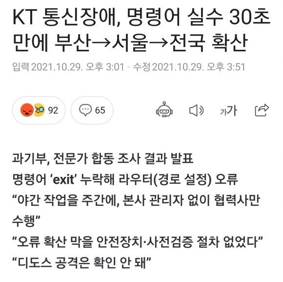 과기부가 발표한 KT 사태 원인