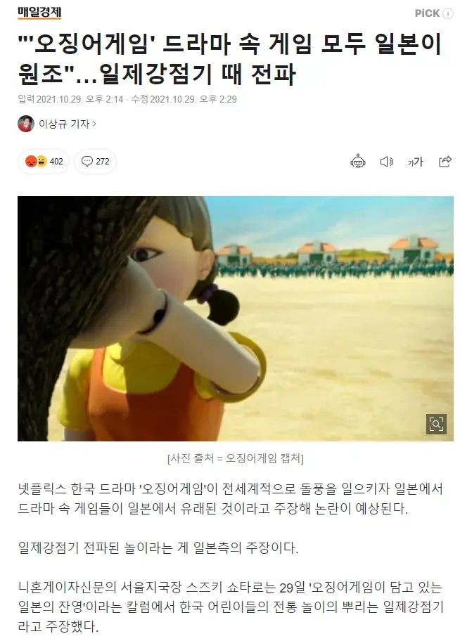 오징어게임' 드라마 속 게임 모두 일본이 원조"…일제강점기 때 전파