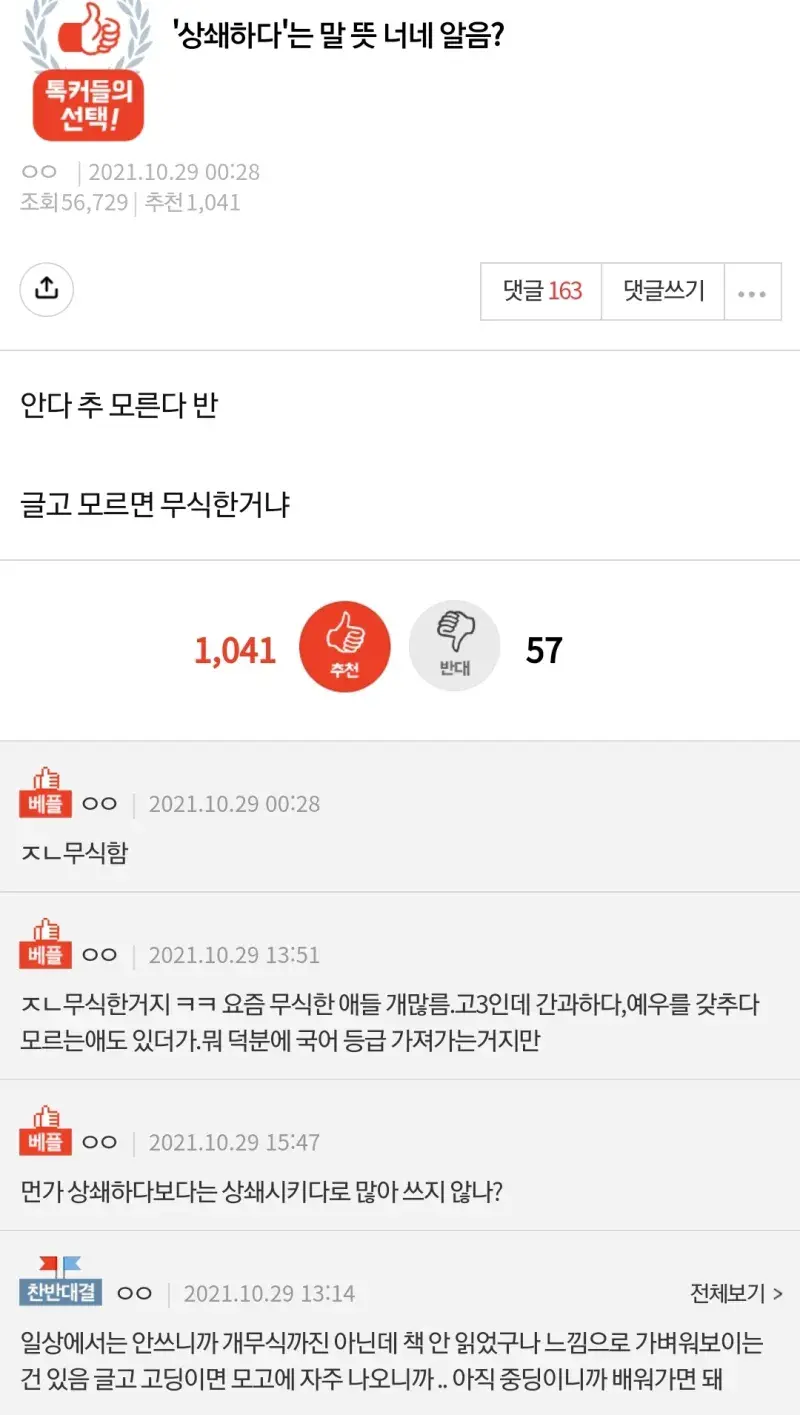 - 커뮤니티에서 상식이다 아니다로 논란생기는 단어나 지식 모르면 무식한거 맞음.예외 없음
