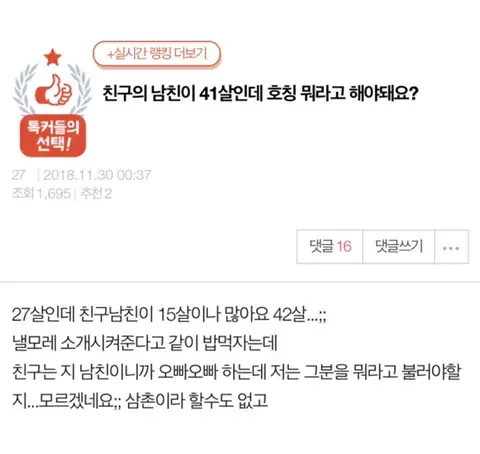 친구의 남친이 41살인데 호칭 뭐라고 해야돼요?