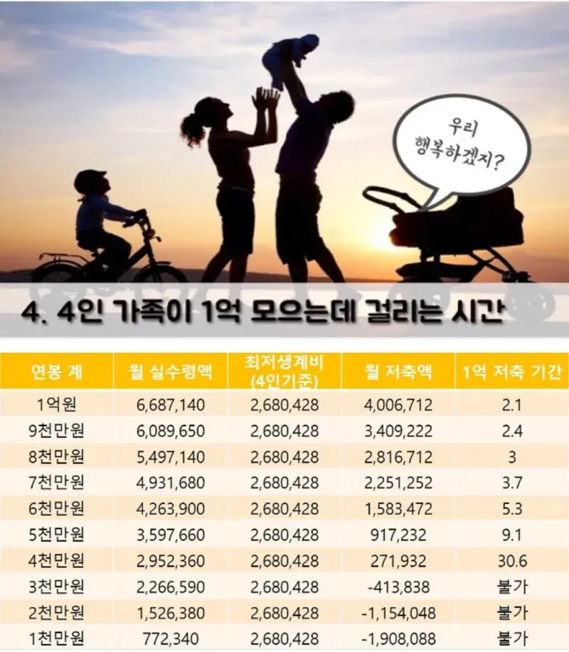 - 저런 엉터리 계산 보고 웃었네~ ㅋㅋㅋ 저긴 월세, 전세대출 등 주거비용이 미포함된것, 즉 집있는 인간이 모을수 있는 돈임, 집 없는 사람은 더 암울함