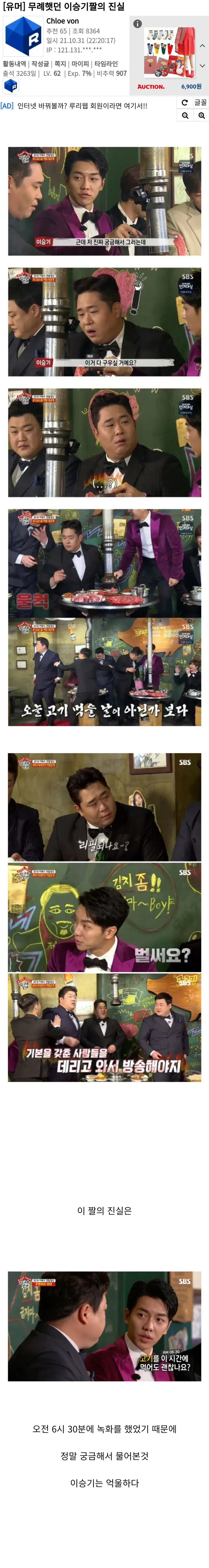 - 내가 이거 본방으로 진짜 재밌게 보면서 느낀게 개그맨들 순발력은 진짜 대단한 것 같더라. 어차피 저 상황도 웃기려고 만든 장면이긴 한데 상황 딱 나오니까 뚱4가 한명은 정색하고 한명은 뭐라하고 한명은 바로 집게 놓고 일어나는 데 진짜 순간적인 합이 기가막히더라. 그런까 양세형도 바로 순간적으로 후다닥 달려나와서 말리는 시늉 하는 것 까지가 화룡점정이었음. 뭐 얘기 들어보니까 연예인들 중에서도 지들끼리 뭐 급 따져서 개그맨은 좀 낮게 보는 경향이 있다고 하던데 그런 얘기 들을때마다 안타깝더라. 쩝...