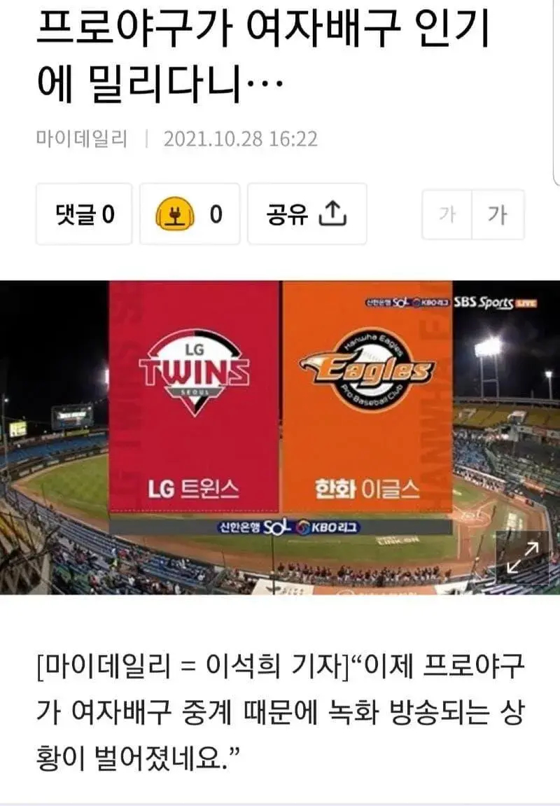 - 크보 야구 시청률 반토막도 아니고 반의 반토막 나서 방송사에서 크보에 경고장 보냄.. 대책 마련하라고