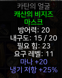 | 19 | 카탄의 얼굴 | 세트아이템 투구 | 버림 |