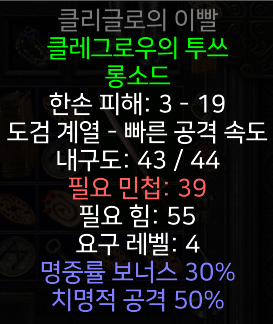 | 클리그로의 이빨 | 세트아이템 무기 | 버림 | |