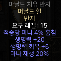 | 13 | 마날드 치유반지 | 마나 4% 훔침 - 하급이라 버림 | 버림 |