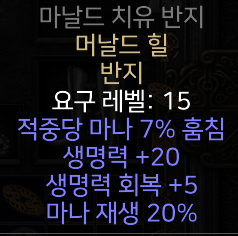 | 6 | 마날드 치유반지 | 저렙 때 마나 보충용 | 일단 보관 |