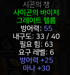 | 시곤의 챙 | 세트아이템 투구 | 버림 | |